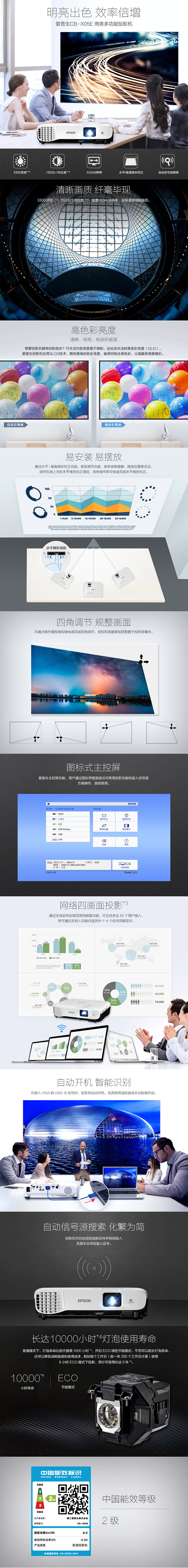 全新 愛普生/EPSON CB-X05E 投影儀(3300流明/XGA分辨率/HDMI/VGA/支持左右梯形校正)